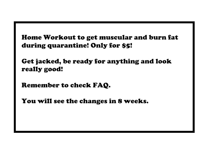 I've been working out and I've tried many sports like basketball, calisthenics, kickboxing and I am currently a powerlifter. If you are stuck in quarantine and in need of a non-equipment workout program I am the right person to buy it from. I am keeping the price as low as possible.I will send it to you as a PDF file.